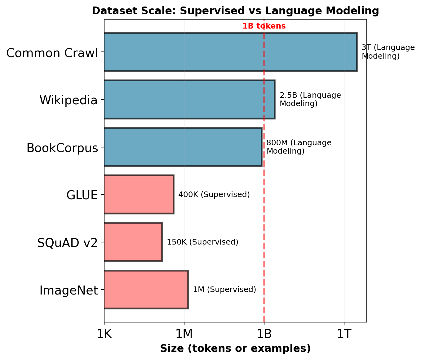 Common Crawl: 3 trillion tokens. 10,000× larger than largest supervised dataset.